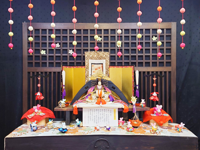 今年はうさぎ年であるため、可愛らしいうさぎのつるし雛がたくさん展示されておりました☆