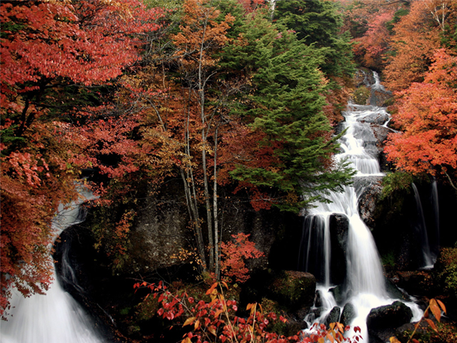 日光市で最も紅葉が早いと言われており、この時期になると滝を覆うように広がるモミジやシナノキが色鮮やかに紅葉し、滝を飾ります♪