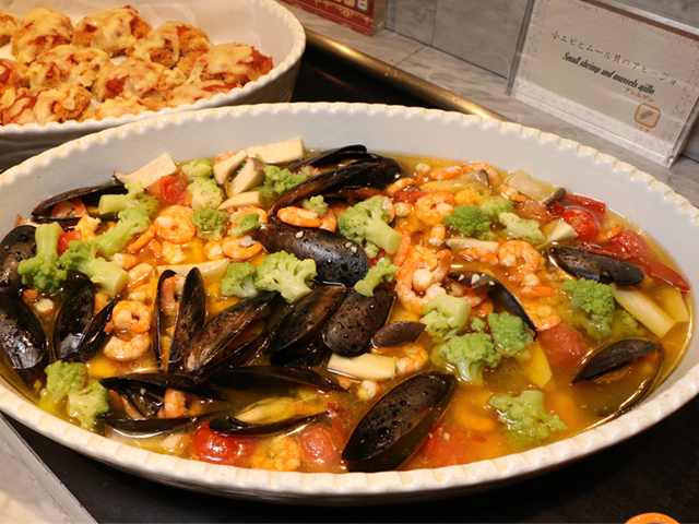 小さなお皿で出されるイメージのある「アヒージョ」ですが、「ASAYA GARDEN」では大皿でたっぷりご用意しました!
