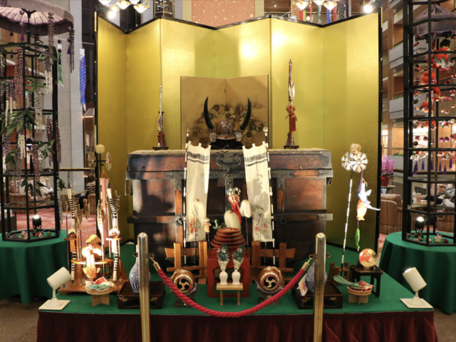五月人形はロビーの他にも秀峰館6階 ティーラウンジ「水季」前やエスカレーター前、八番館連絡通路など様々な場所に展示しております♪