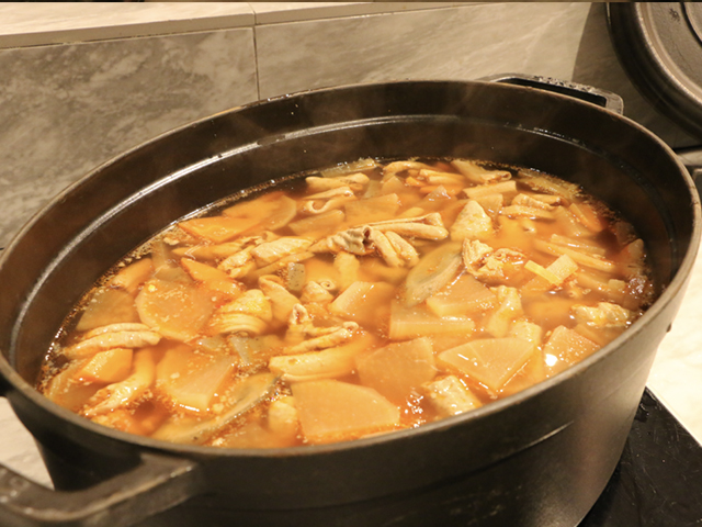 テーブルで火にかけ、お好みのタイミングで熱々を楽しめる人気のメニューです♪