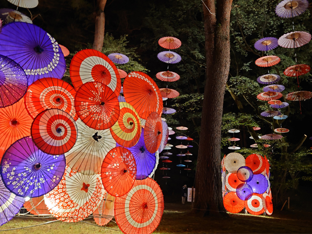 メインとなるライトアップの会場は鬼怒川公園で、会場内には和傘を中心とした色とりどりの”あかり”が設置されます♪