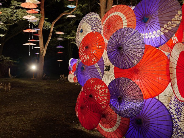 メイン会場である鬼怒川公園では、9月20日(金)~9月29日(日)の間、和傘飾りが設置され、ライトアップが行われております♪