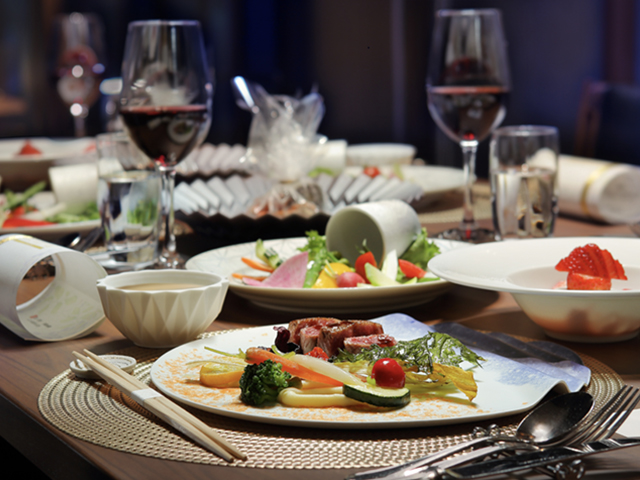 お食事は1番人気のブッフェの他、半個室のレストランでの創作料理もお選びいただけます♪