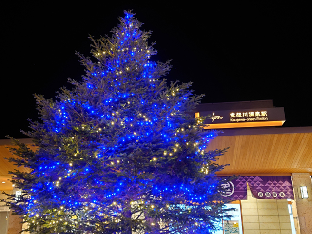 「いっしょにイルミネーション」開催にあたり、鬼怒川温泉駅前では本日18:15よりイルミネーションの点灯式が行われます♪