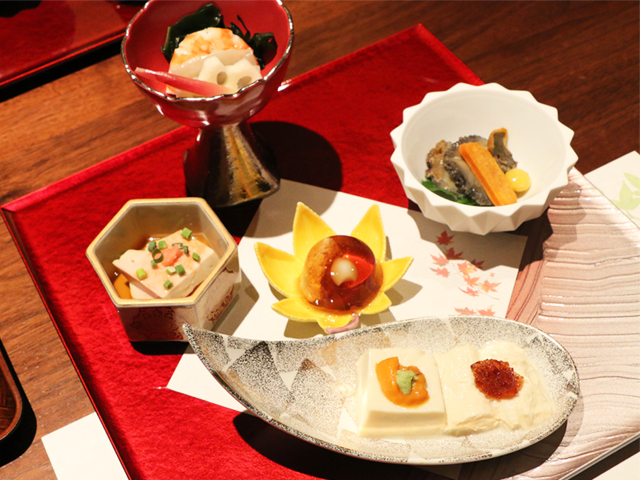 <吸物>には豆腐珊瑚や海老芋などを使用しております♪