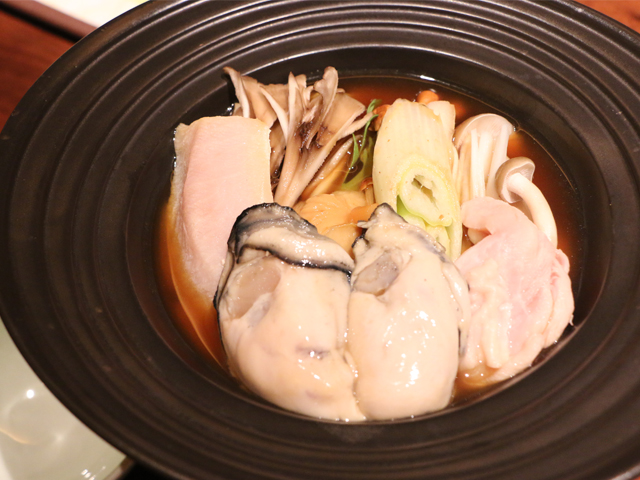 <お造り>は本鮪・鮃・北奇貝をお召し上がりいただき、続く<温物>には「寒鰤と牡蠣の味噌仕立て」をご用意いたします♪
