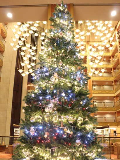 秀峰館6階のフロントロビーには、赤・ゴールド・シルバーの電飾が目を引く煌びやかなクリスマスツリー☆