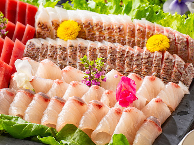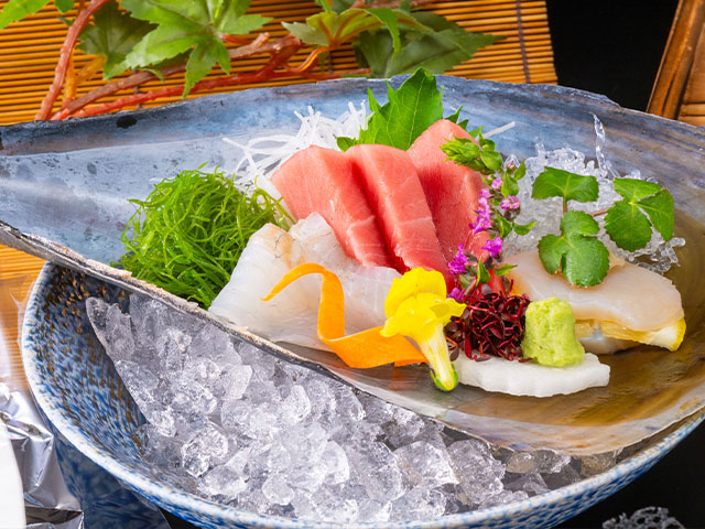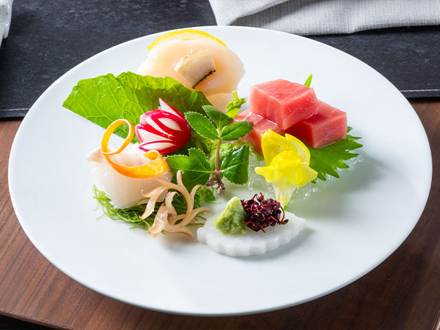 また、個室料亭「日光」でお召し上がりいただく会席料理、半個室レストラン「wisteria」でお召し上がりいただく創作料理のコースでもお刺身をご用意しております♪