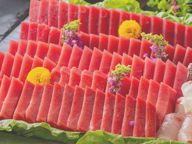 ブッフェレストラン「ASAYA GARDEN」では、現在鮪、鯛、勘八の3種類をご用意しており、新鮮なお刺身を心ゆくまでお楽しみいただけます♪