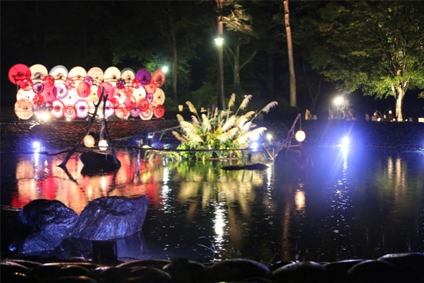 赤や紫、大小様々な和傘とそれを照らすあかりが雅な輝きを放ち、水面に映る美しい和傘やあかりとともにぜひお写真をお撮りになってくださいね♪