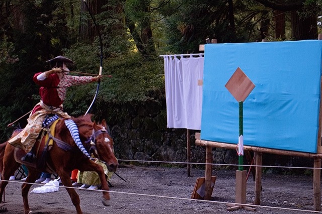精鋭12人の射手が「陰陽射(いんようい)」という勇ましい掛け声とともに馬上から次々と的を射抜きます!