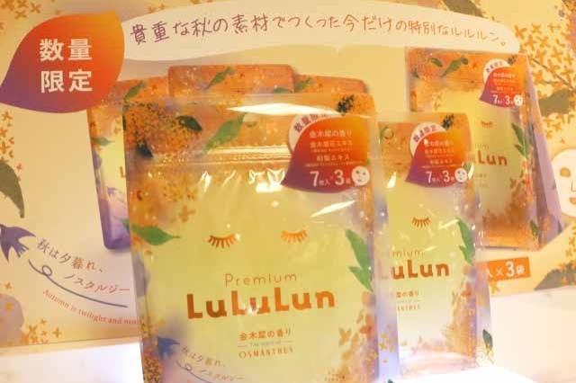 各地域限定の定番商品「ルルルンフェイスマスク」もございますが、寒暖差でゆらぎがちな秋の肌にはこの季節限定の「プレミアムルルルン 金木犀」が特におすすめです!