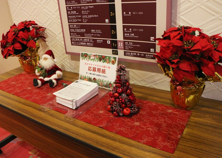 応募用紙と投函用の専用ポストは秀峰館6階 おみやげ街道「麻屋」横にご用意しておりますので、ご宿泊のお客様はぜひご応募ください◎