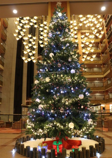 玄関を入ってすぐ目に飛び込んでくるのは、秀峰館6階ロビーに飾られた大きなクリスマスツリー♪