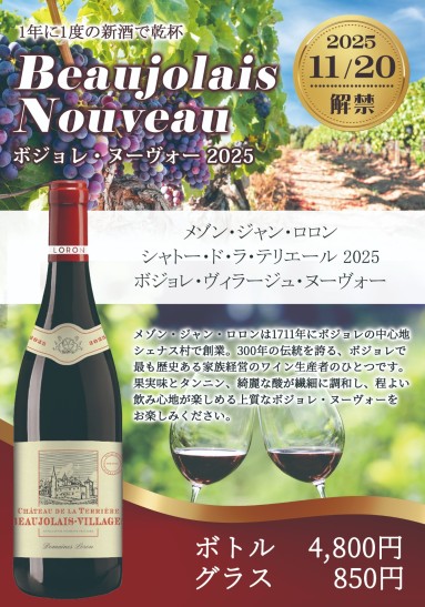 また、明日11月20日はボジョレ・ヌーヴォーの解禁日ですね♪