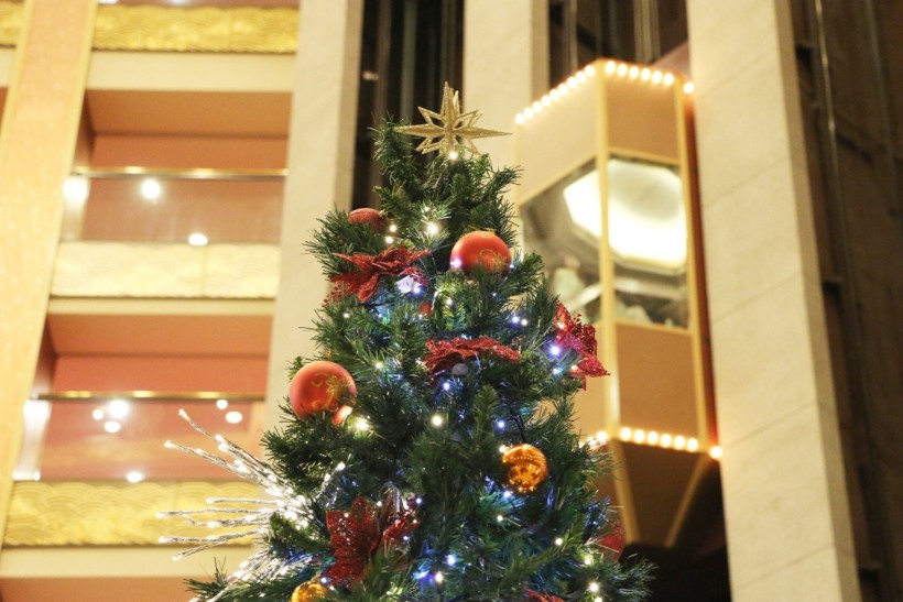 フロントロビーのクリスマスツリーは、赤・ゴールド・シルバーの電飾が目を引く煌びやかなツリー☆