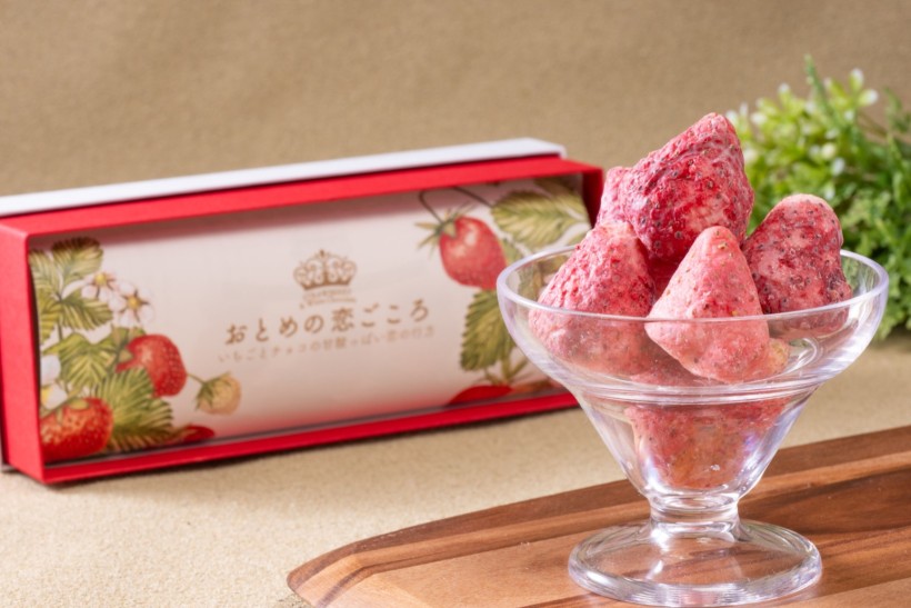 フリーズドライ加工を施した栃木県産いちごに、独自の製法で果実の中心部までたっぷりとホワイトチョコレートをしみ込ませました!