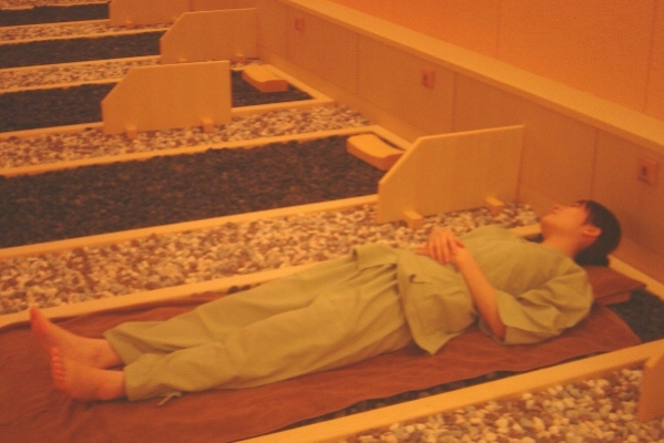 岩盤浴とは、温められた石の上にうつ伏せや仰向けになり、岩盤から発せられる遠赤外線の作用によって体を温める温浴方法です◎