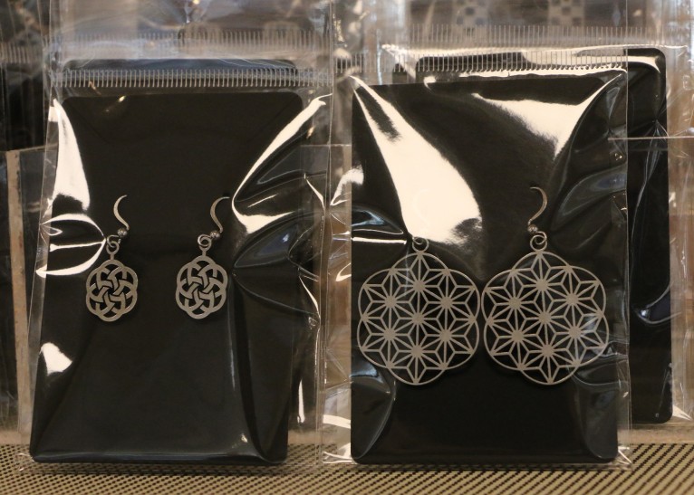 栃木県の伝統工芸品である「鹿沼組子」の模様を活かした、ステンレス製ピアスなどがございます♪
