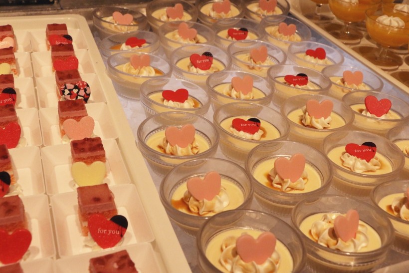 中でも、ハート形のチョコレートをトッピングしたプリンやケーキは、思わず写真に収めたくなる可愛らしさ◎