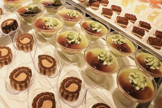 「抹茶&チョコレート」のスイーツはもちろん、オープンキッチンで焼きたてのステーキや揚げたての天婦羅などもお楽しみください(^^♪