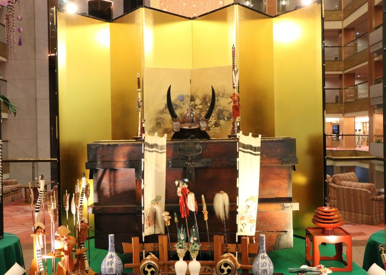 ティーラウンジ「水季」前には、「端午の節句」を象徴する五月人形を展示しております◎