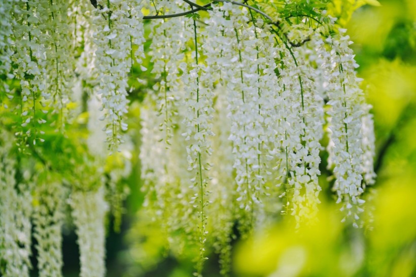 藤の花は咲く順番も美しく、うす紅 → 紫 → 白 → 黄色と、色が移り変わりながら約1ヶ月間楽しめるのが特徴です◎